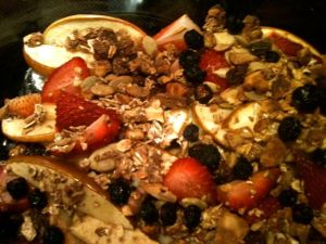 Sprinkle the granola over the fruit mixture, so that it covers the fruit as much as possible.