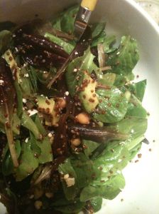 First up, red quinoa and baby romaine, with an olive oil/balsamic vinegar dressing.